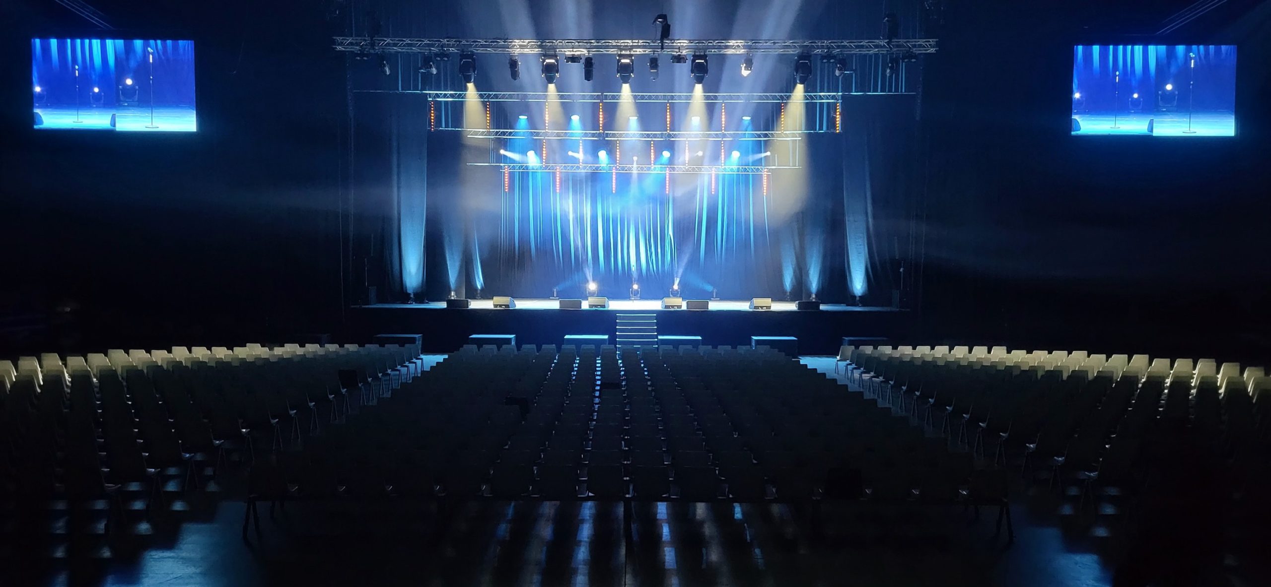 Parc Expo de Rouen Ecran LEDCAST pitch 2,8 mm indoor pour AKTUA PROD (partie technique son, lumière, mur de led et structure)