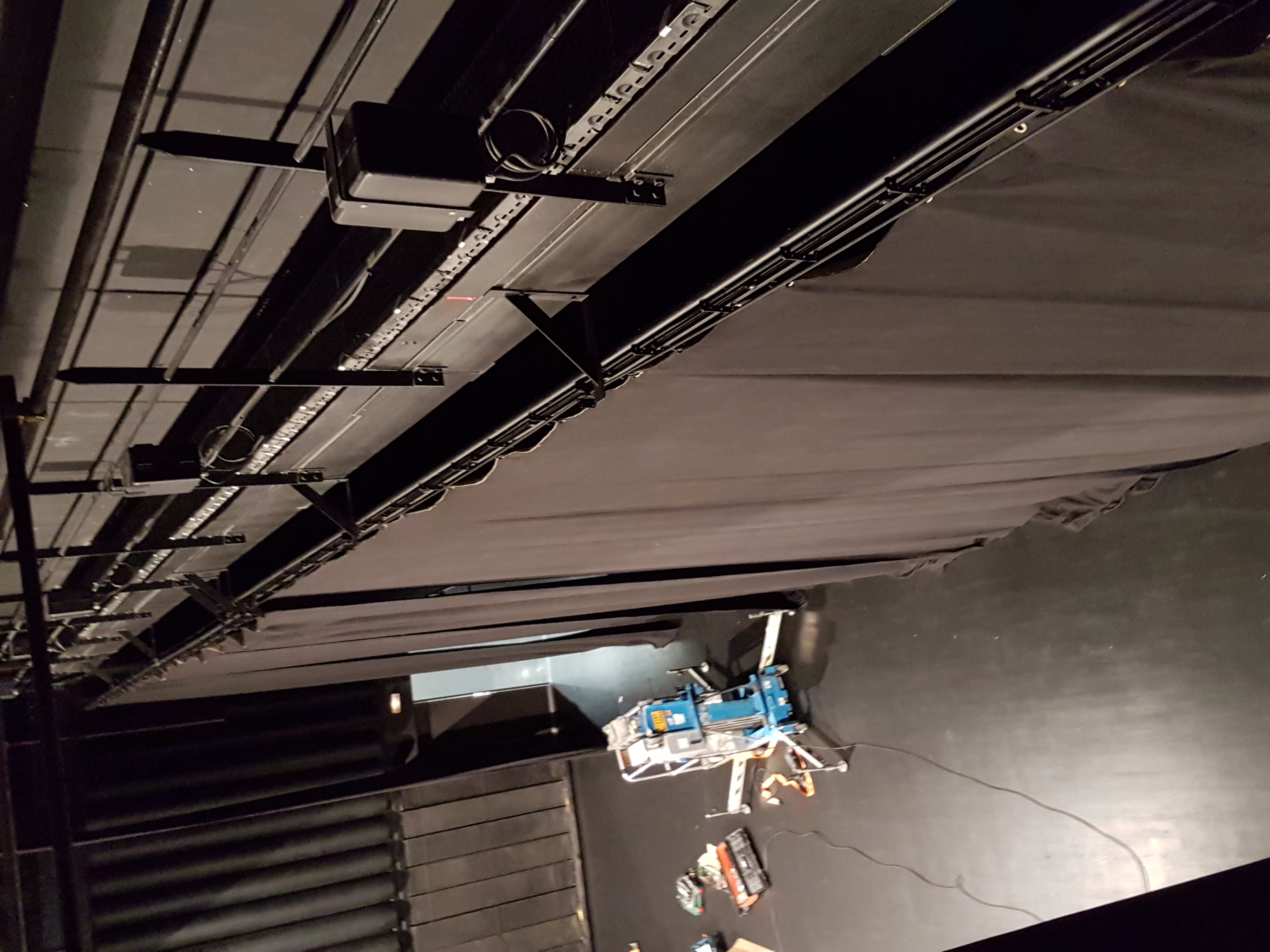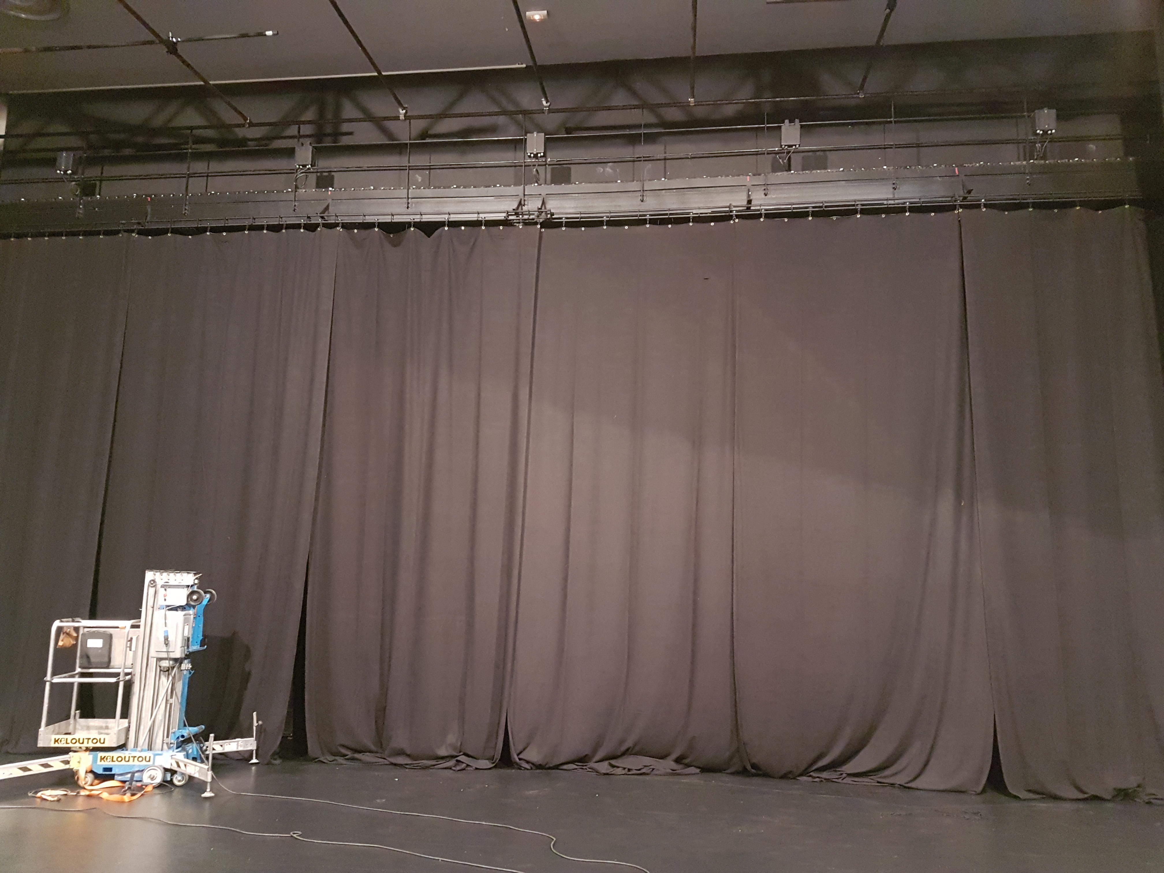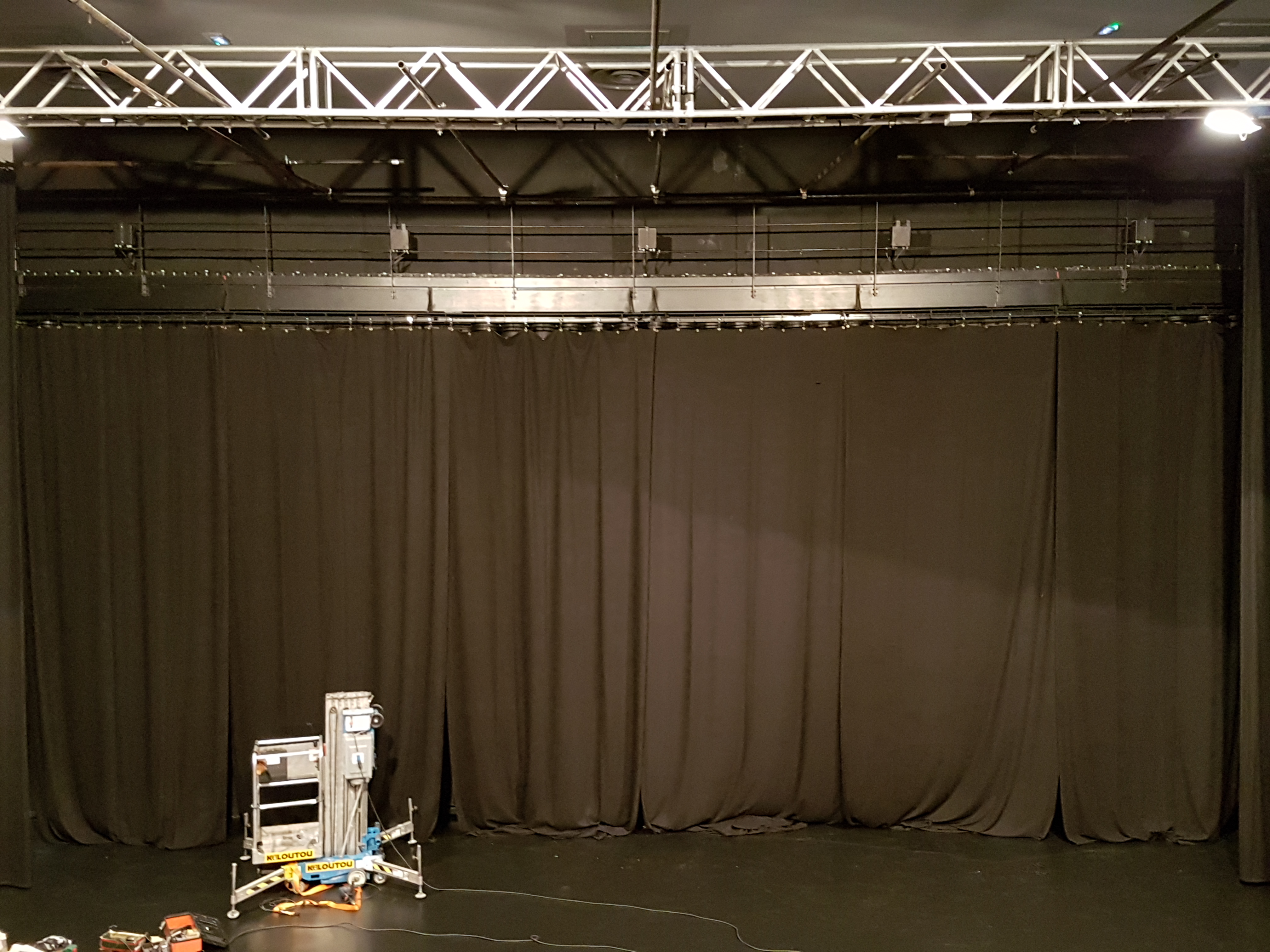 Installation rail, rideau fond de scène – école de musique