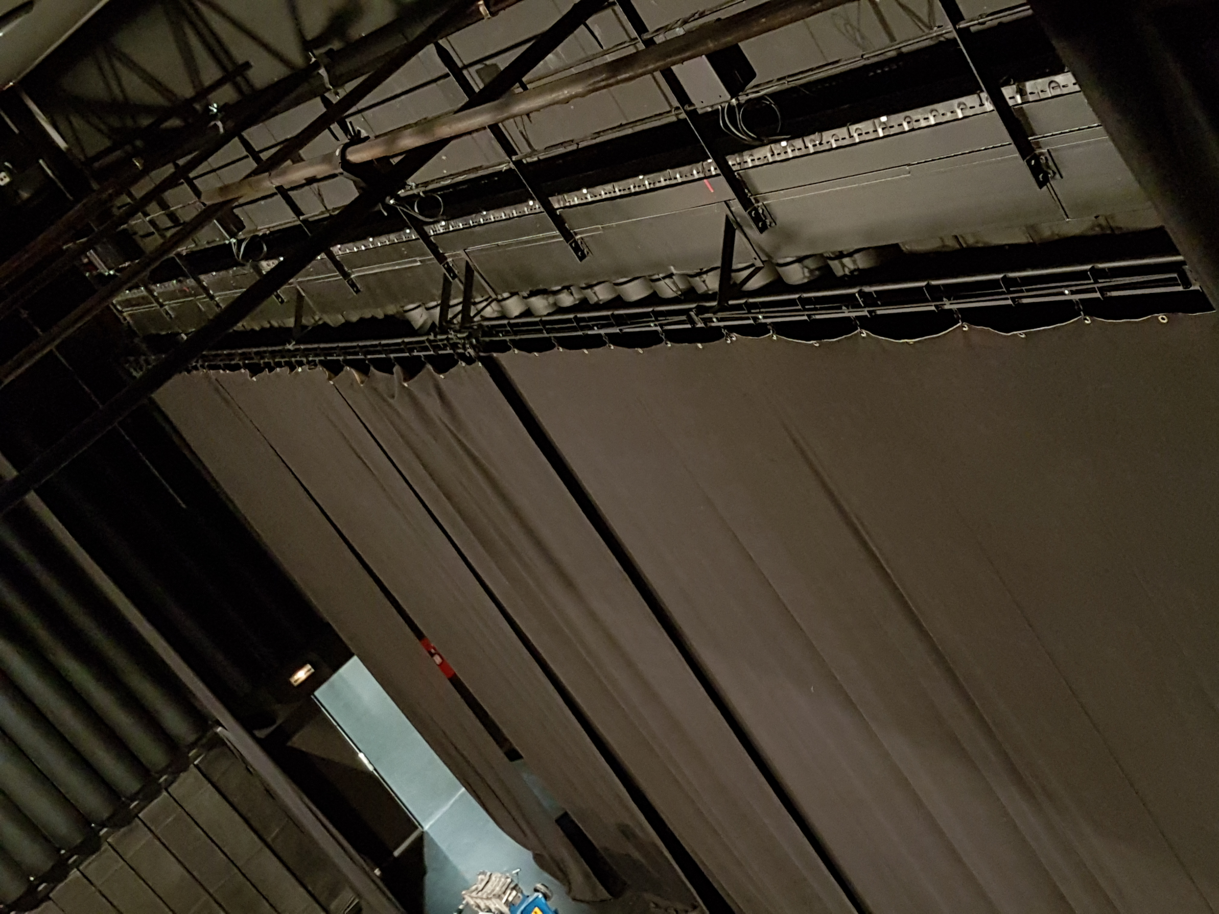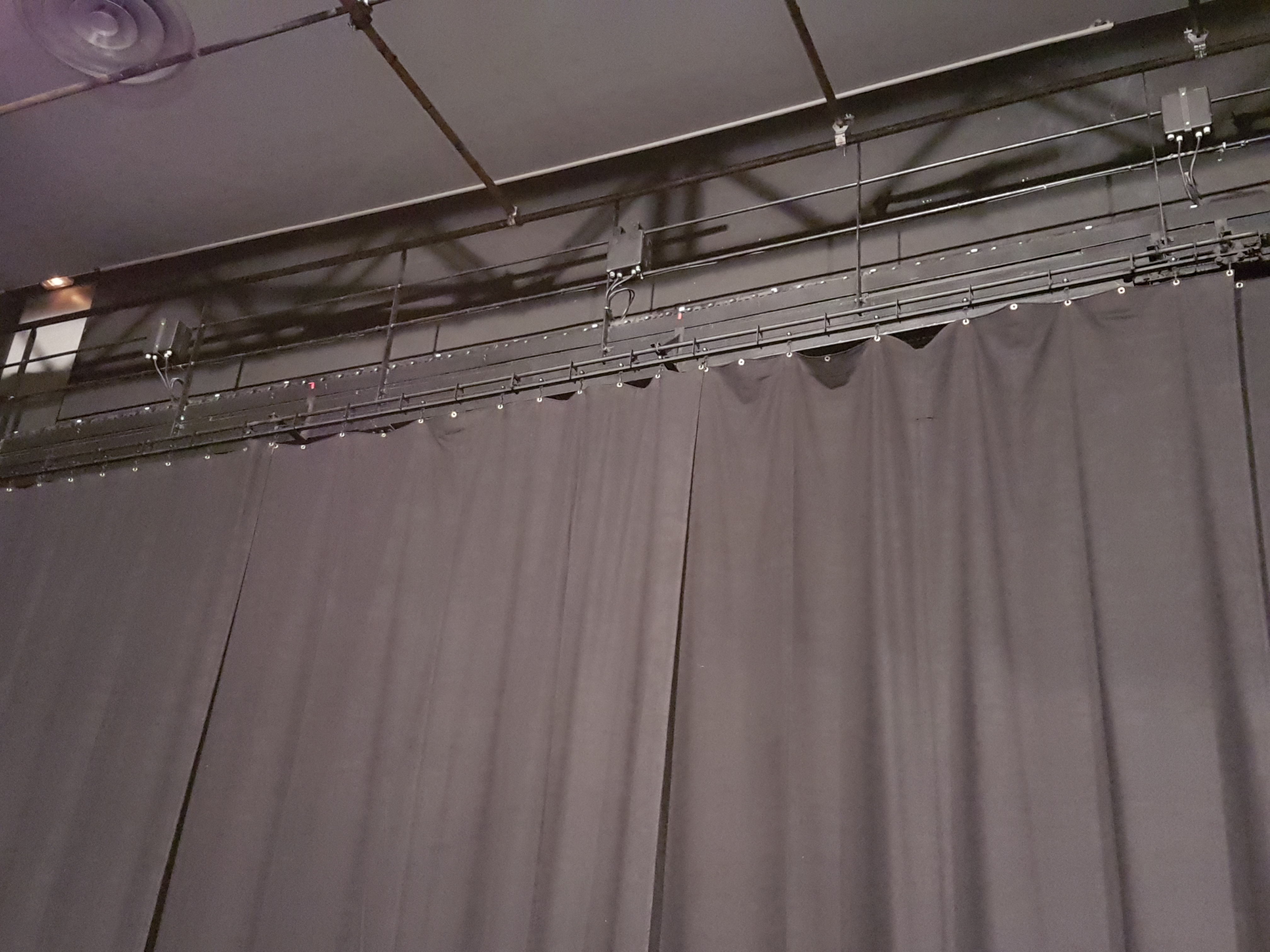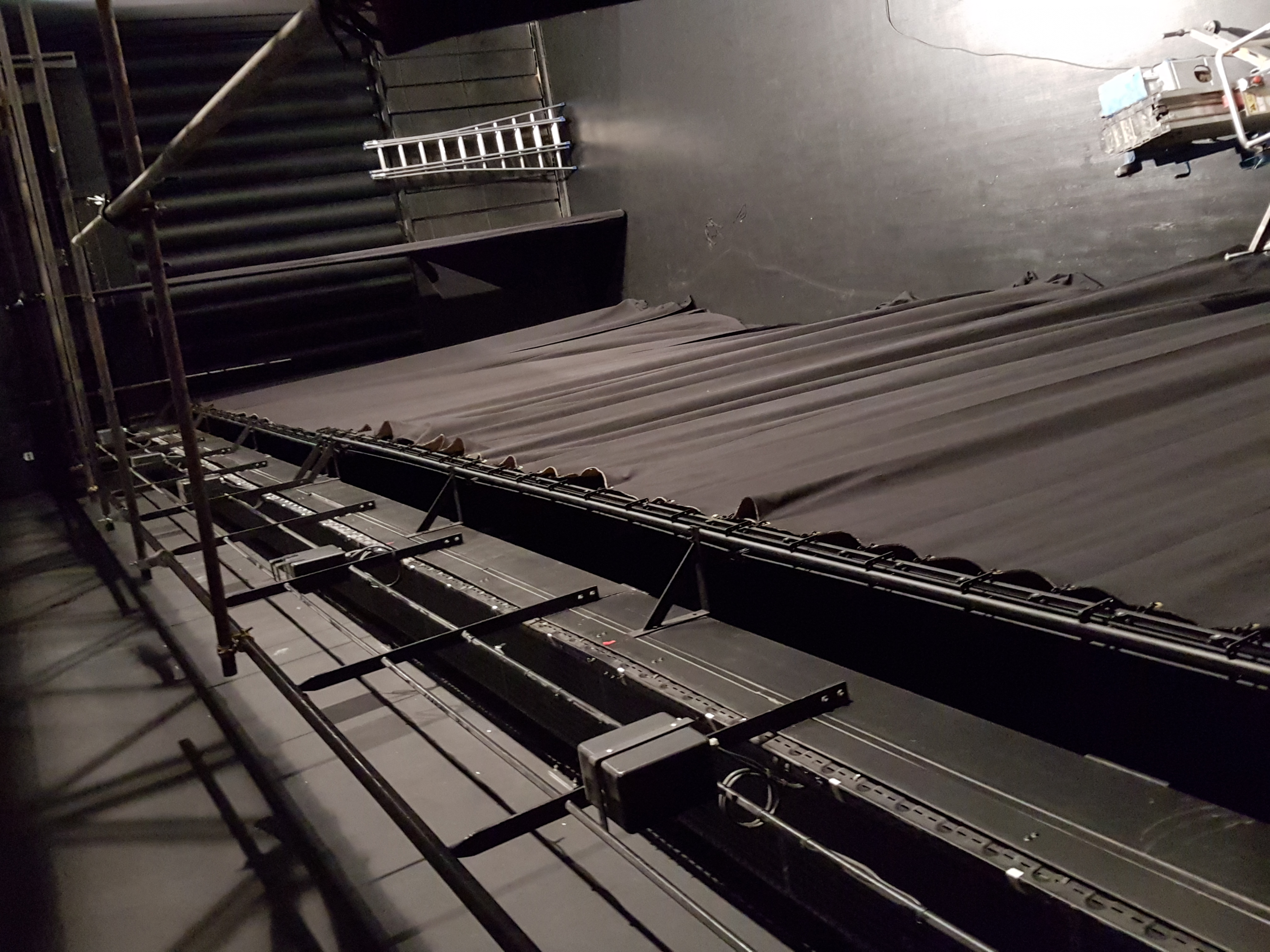 Installation rail, rideau fond de scène – école de musique